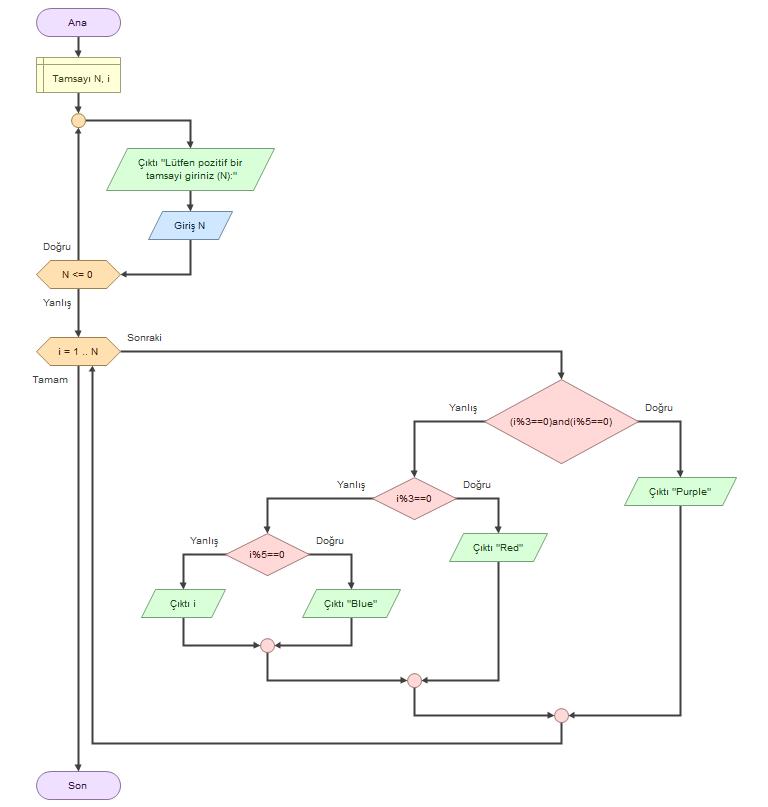 - Eğer sayı hem 3’e hem 5’e tam bölünüyorsa, ekrana “Purple” yazdırınız.